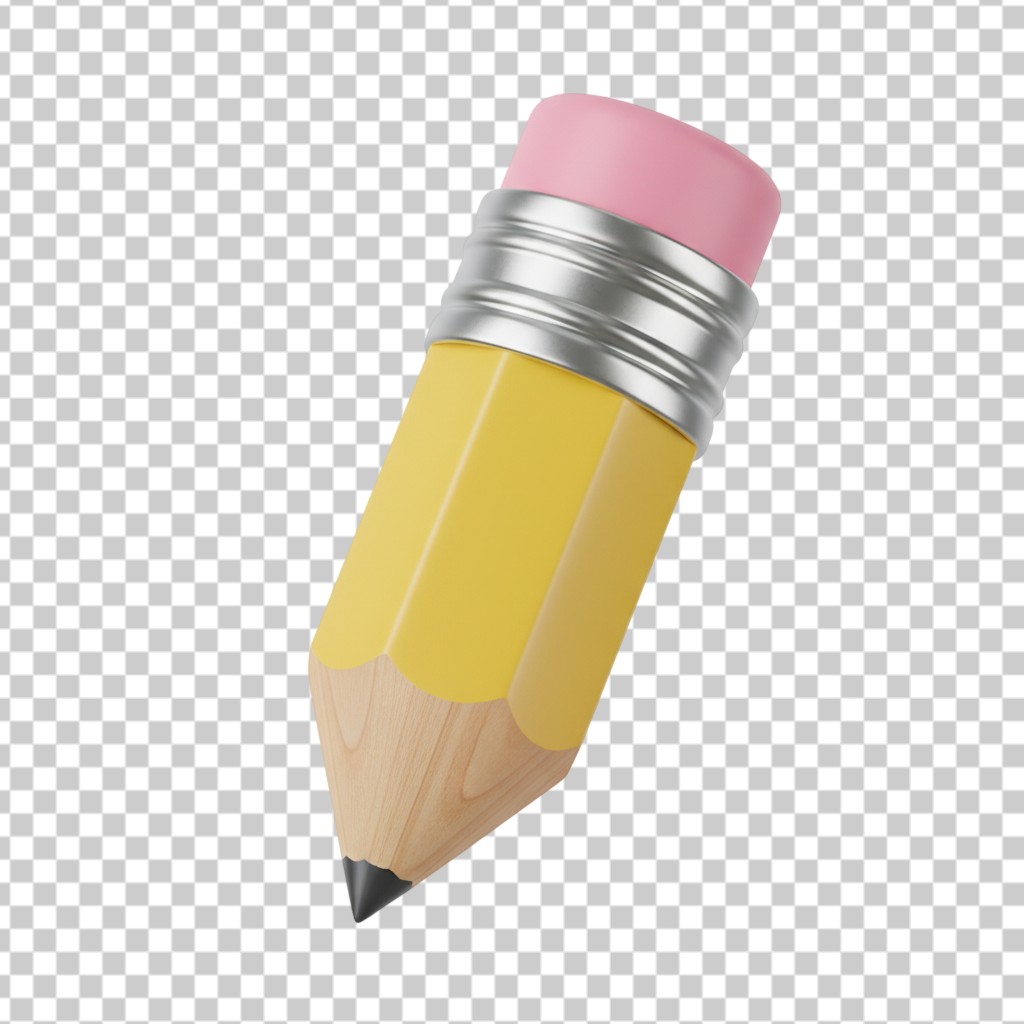 3D Yellow Short Pencil with Eraser PNG Transparent Background