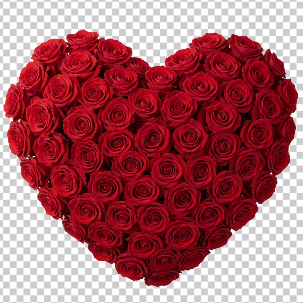 Large Heart Shape Made of Red Roses Flowers PNG Transparent Background