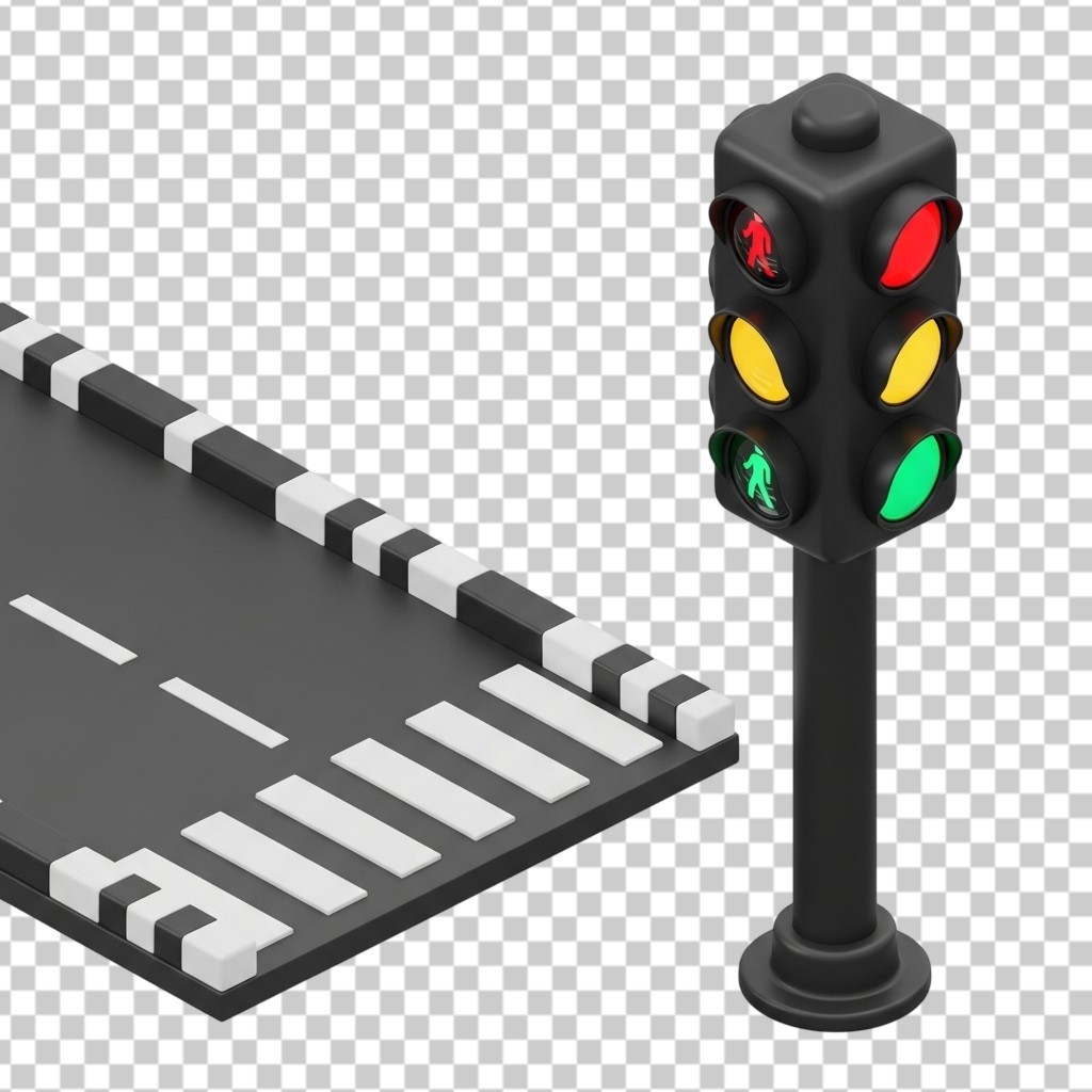 3D Traffic Light with Asphalt Road Street Crosswalk Illustration PNG Transparent Background