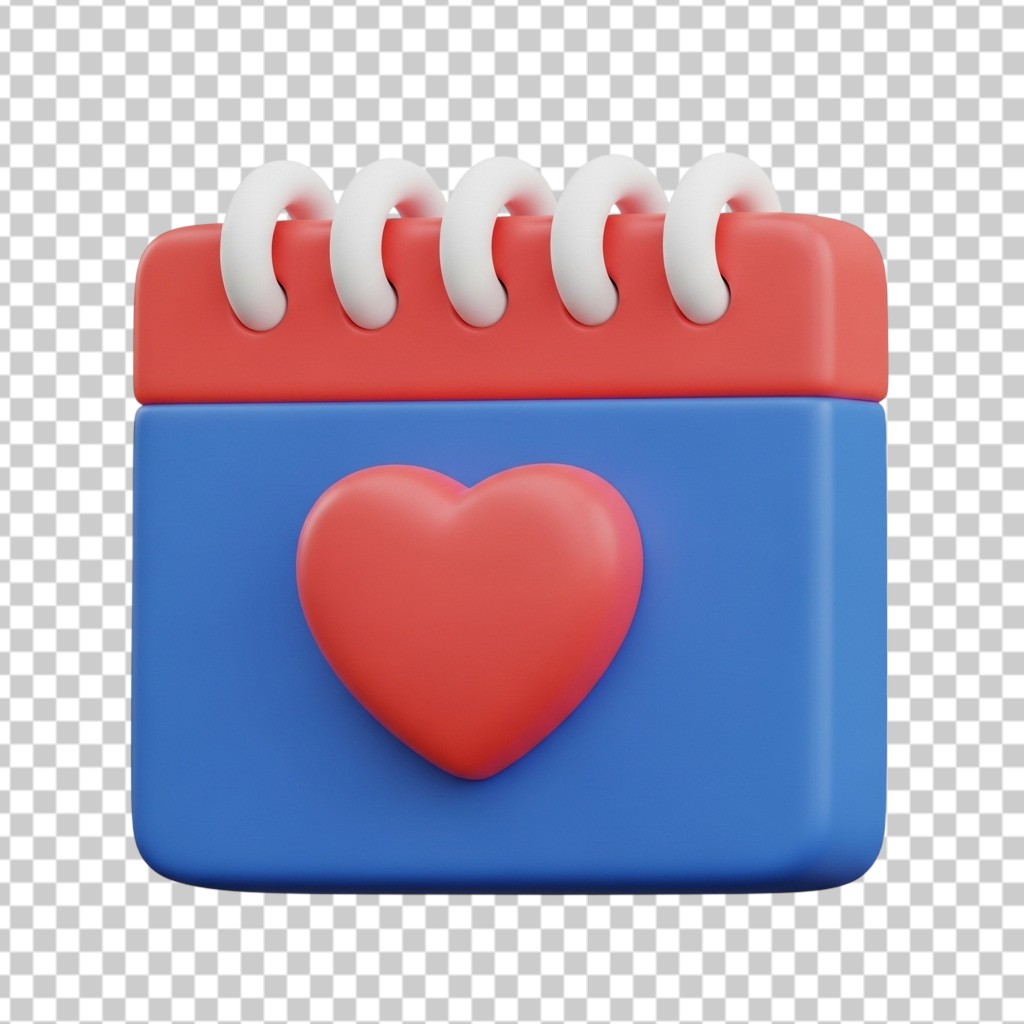 3D Blue Calendar with Red Heart Valentine Day Icon PNG Transparent Background