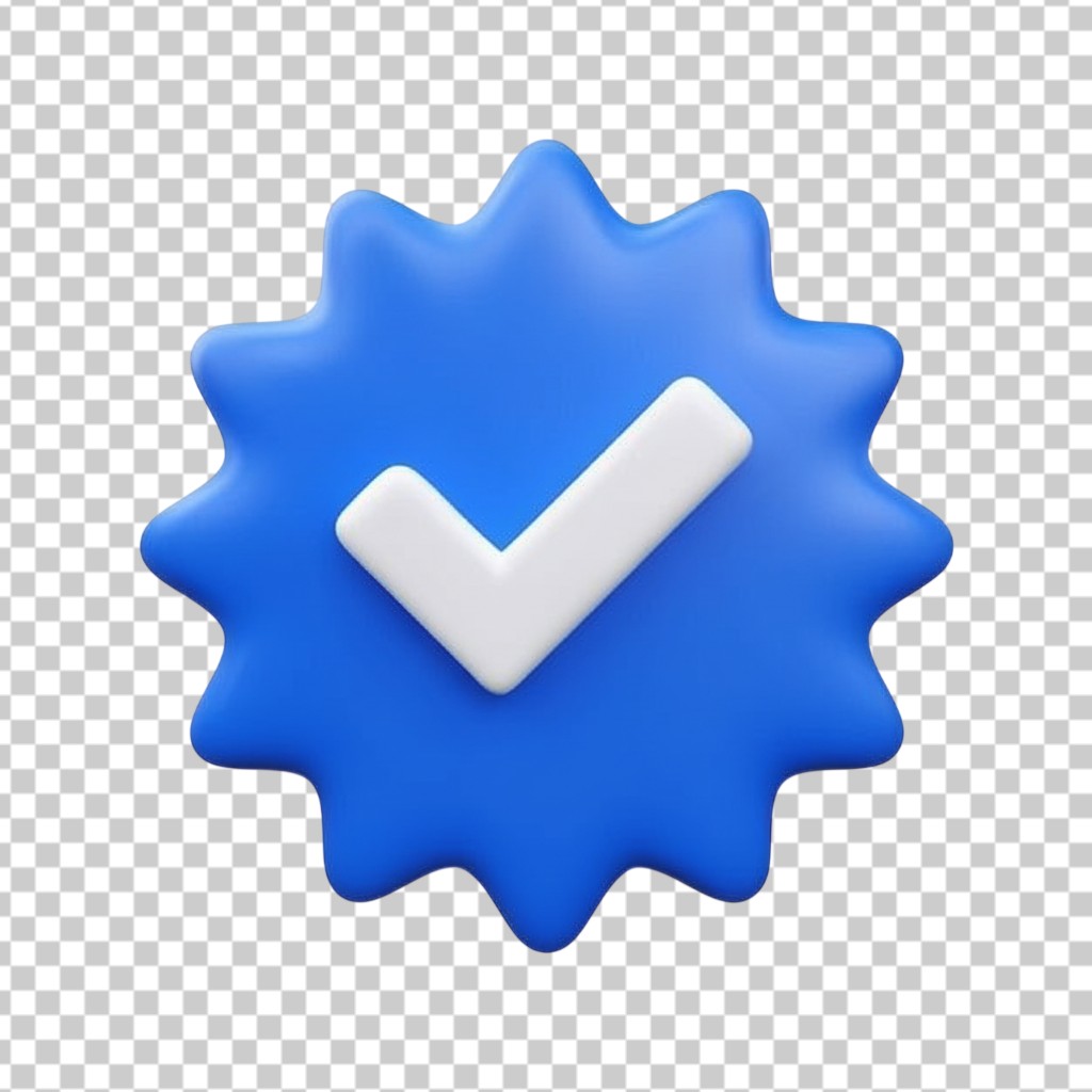 Blue Verified Checkmark Badge 3D Premium Symbol PNG Transparent Background