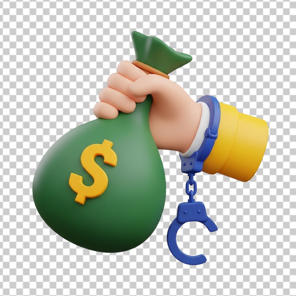 Hand Holding a Green Money Bag with Handcuffs for Financial Crime Concept PNG Transparent Background