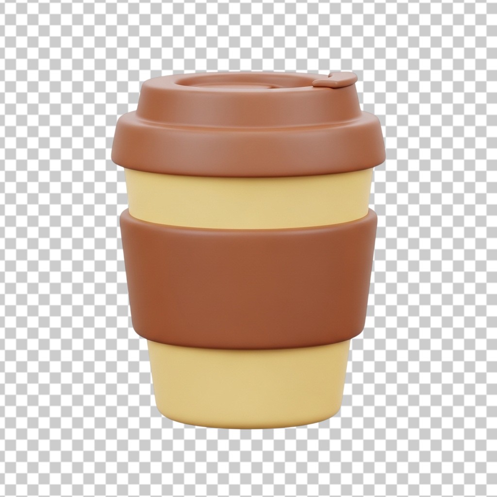 3D Brown Takeaway Coffee Cup with Plastic Lid PNG Transparent Background