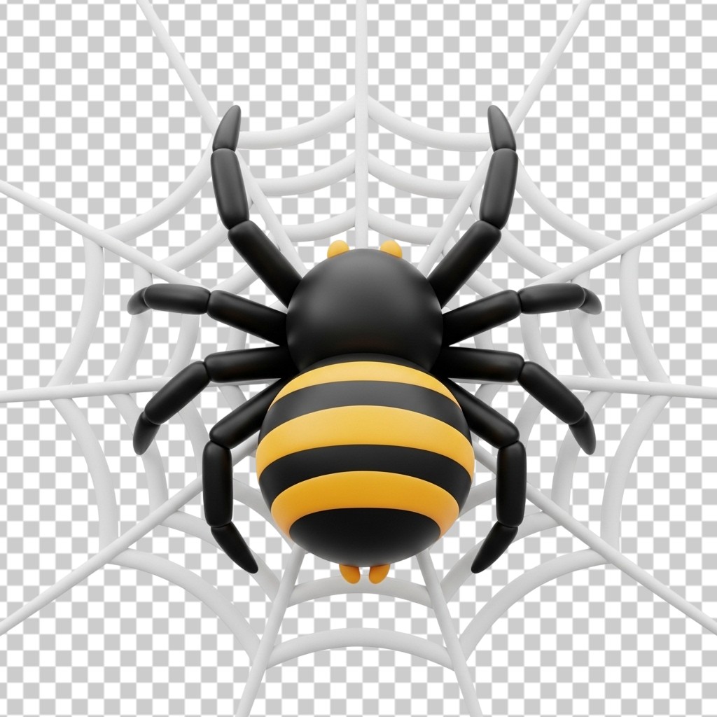 Bee Character Inside a Spider Web 3D Halloween Icon PNG Transparent Background