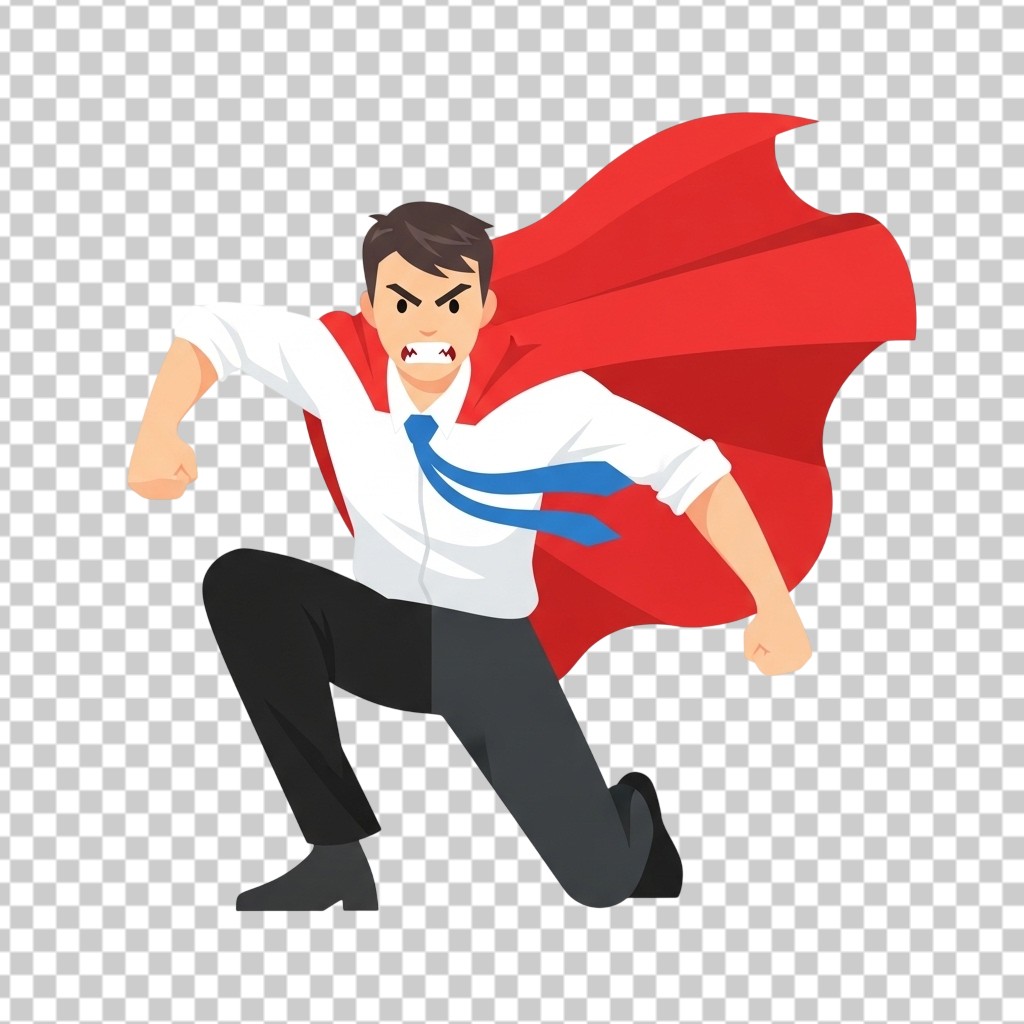 Professional Businessman as a Superhero Flying Forward with Red Cape PNG Transparent Background