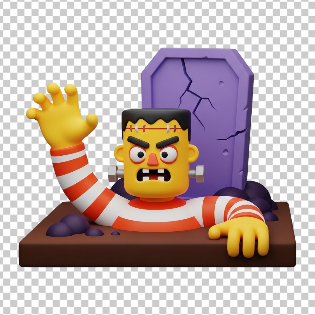 3D Frankenstein Monster Rising from Grave for Halloween PNG Transparent Background