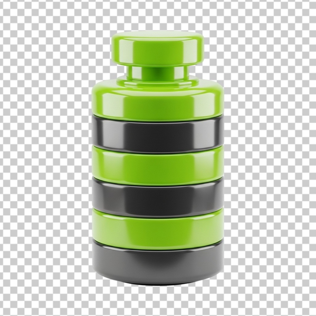Green Glass Battery Energy Level 3D Rendering PNG Transparent Background