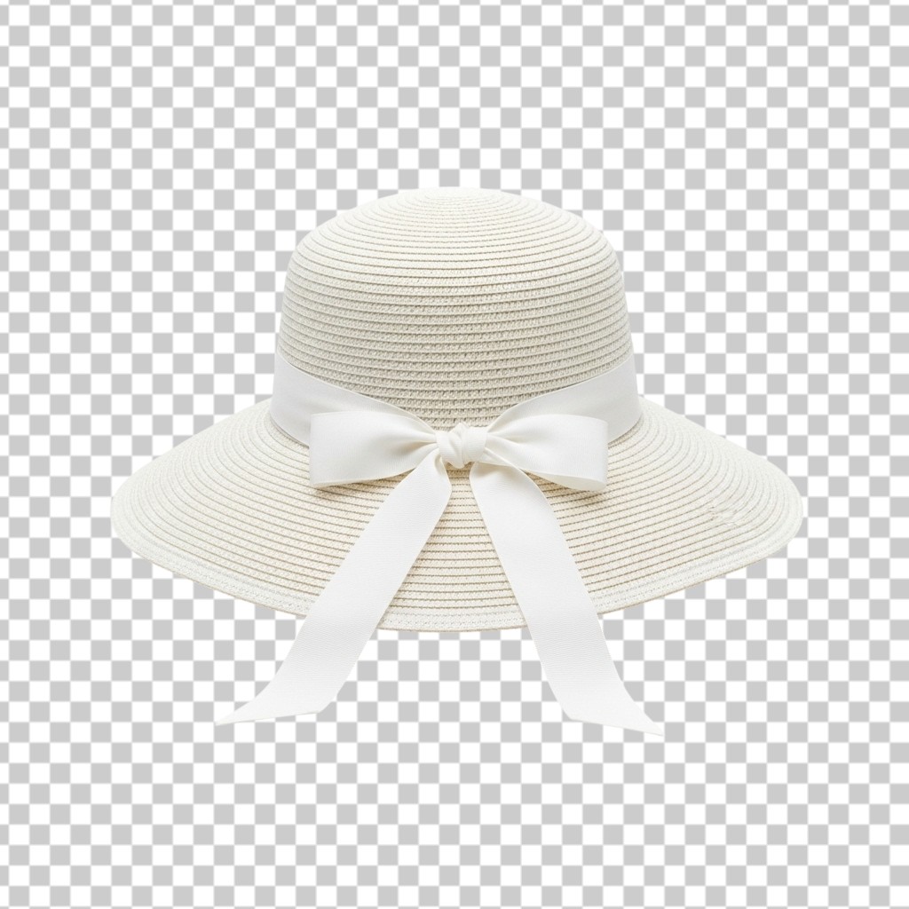 Elegant White Summer Sun Hat with Ribbon Bow PNG Transparent Background