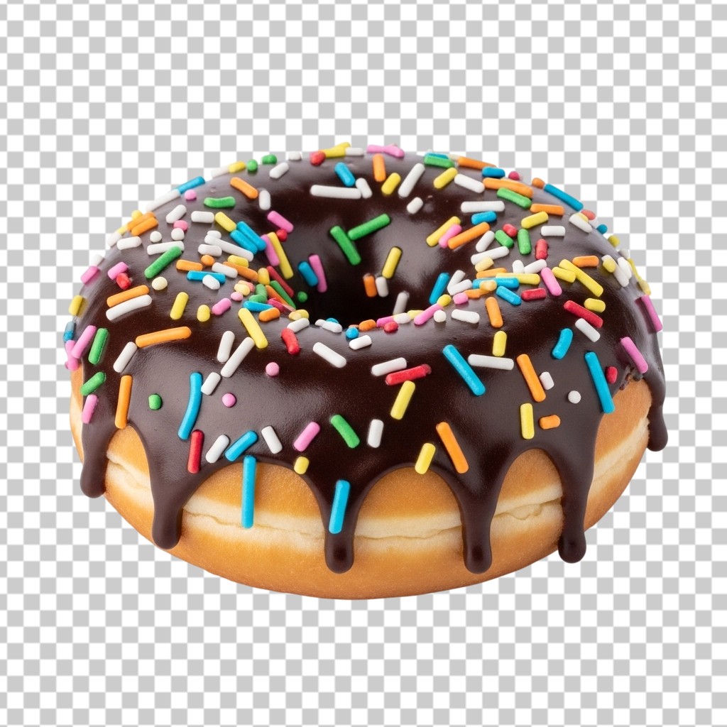 Chocolate Donut with Colorful Sprinkles 3D Concept PNG Transparent Background