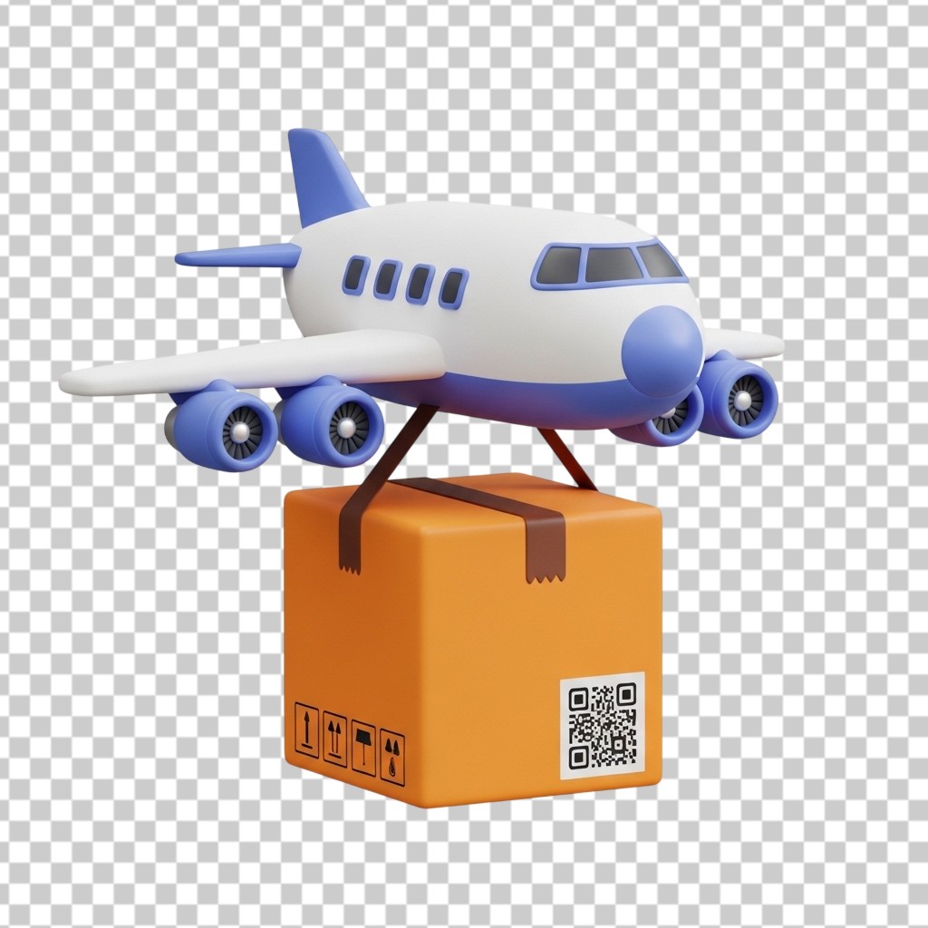 Cargo Airplane Delivering Shipping Package 3D Illustration PNG Transparent Background
