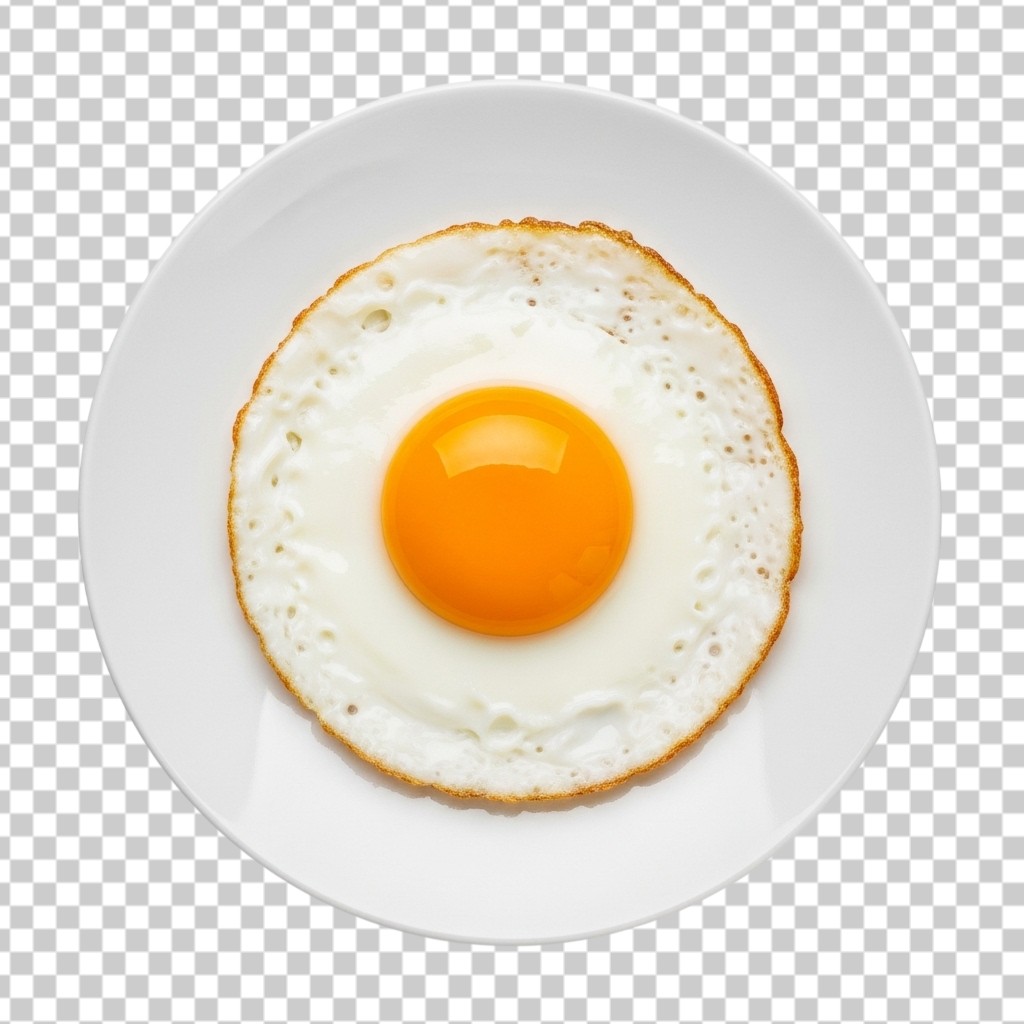 Single Sunny Side Up Fried Egg on White Plate PNG Transparent Background