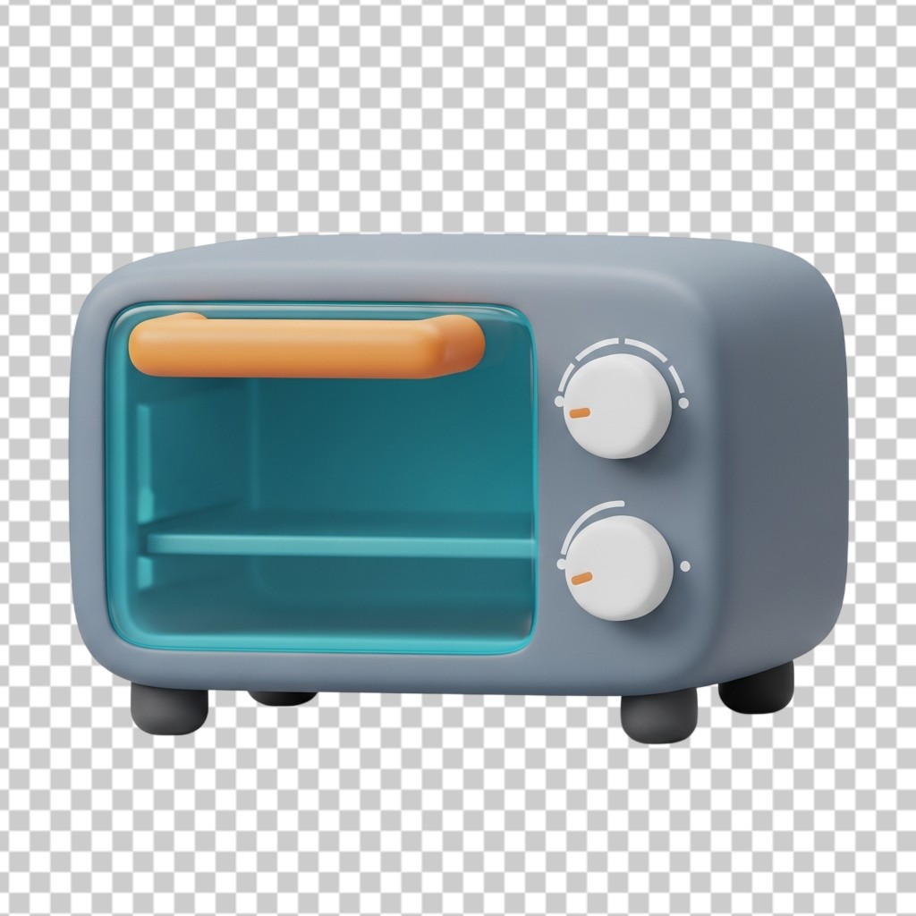 Blue Toaster Oven Kitchen Appliance 3D Cooking Icon PNG Transparent Background