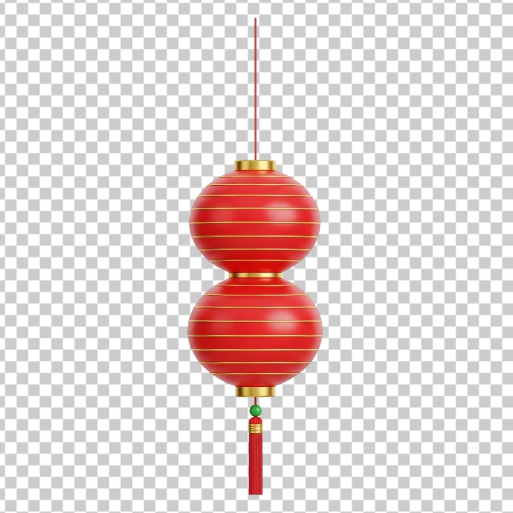 3D Traditional Chinese Red Lanterns Decoration PNG Transparent Background