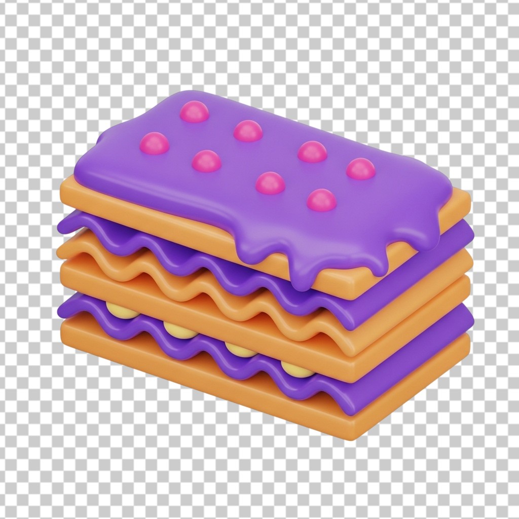 3D Slice of Layered Cake with Purple Topping PNG Transparent Background
