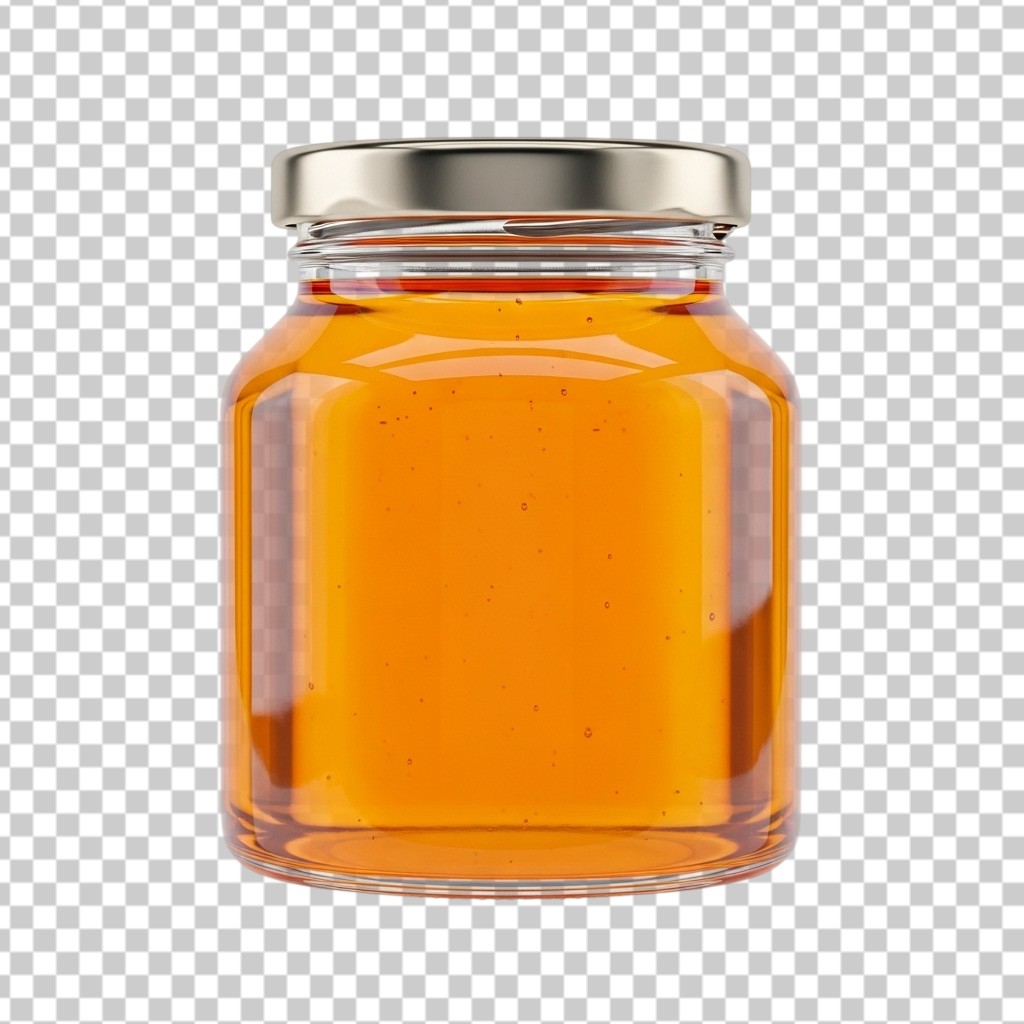 Glass Jar Filled with Pure Golden Honey 3D Food Illustration PNG Transparent Background