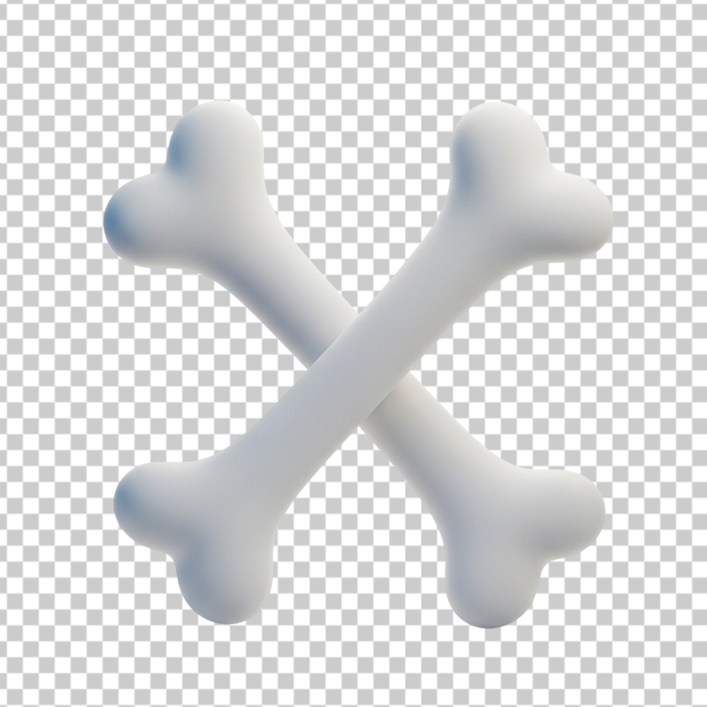 3D White Crossed Bones Icon for Danger and Halloween Themes PNG Transparent Background