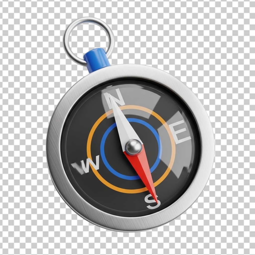 Detailed 3D Compass for Navigation PNG Transparent Background