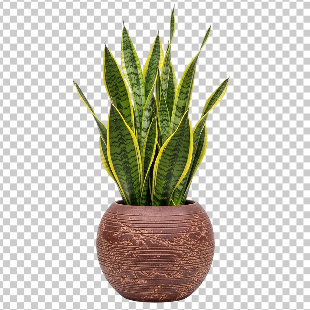 Sansevieria Snake Plant in Brown Ceramic Pot Interior Decor PNG Transparent Background