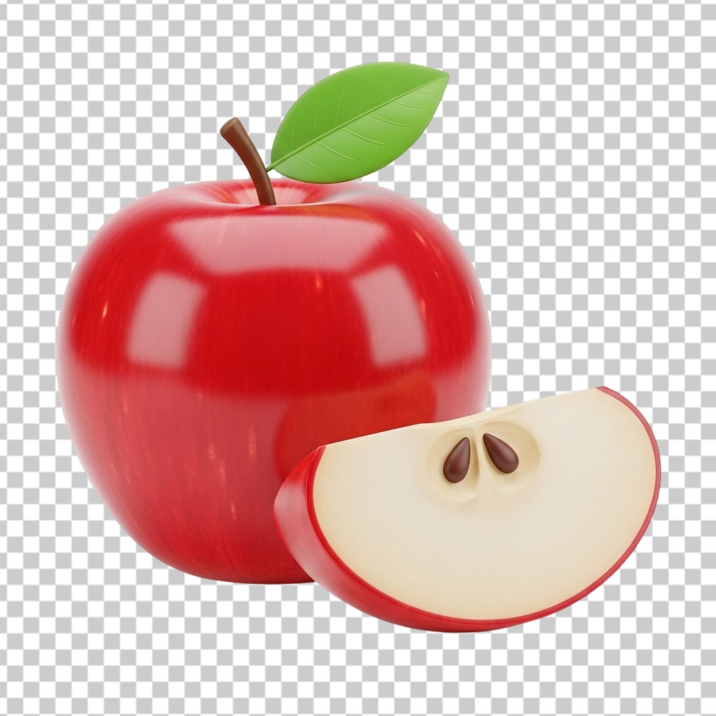 3D Red Apple Fruit with a Sliced Piece PNG Transparent Background
