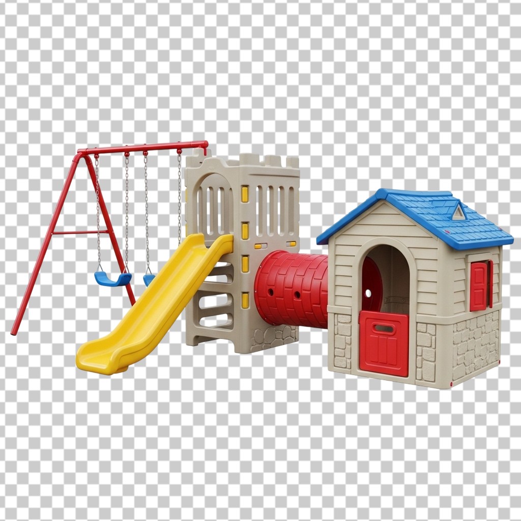 Colorful Children's Playground with Slide and House PNG Transparent Background