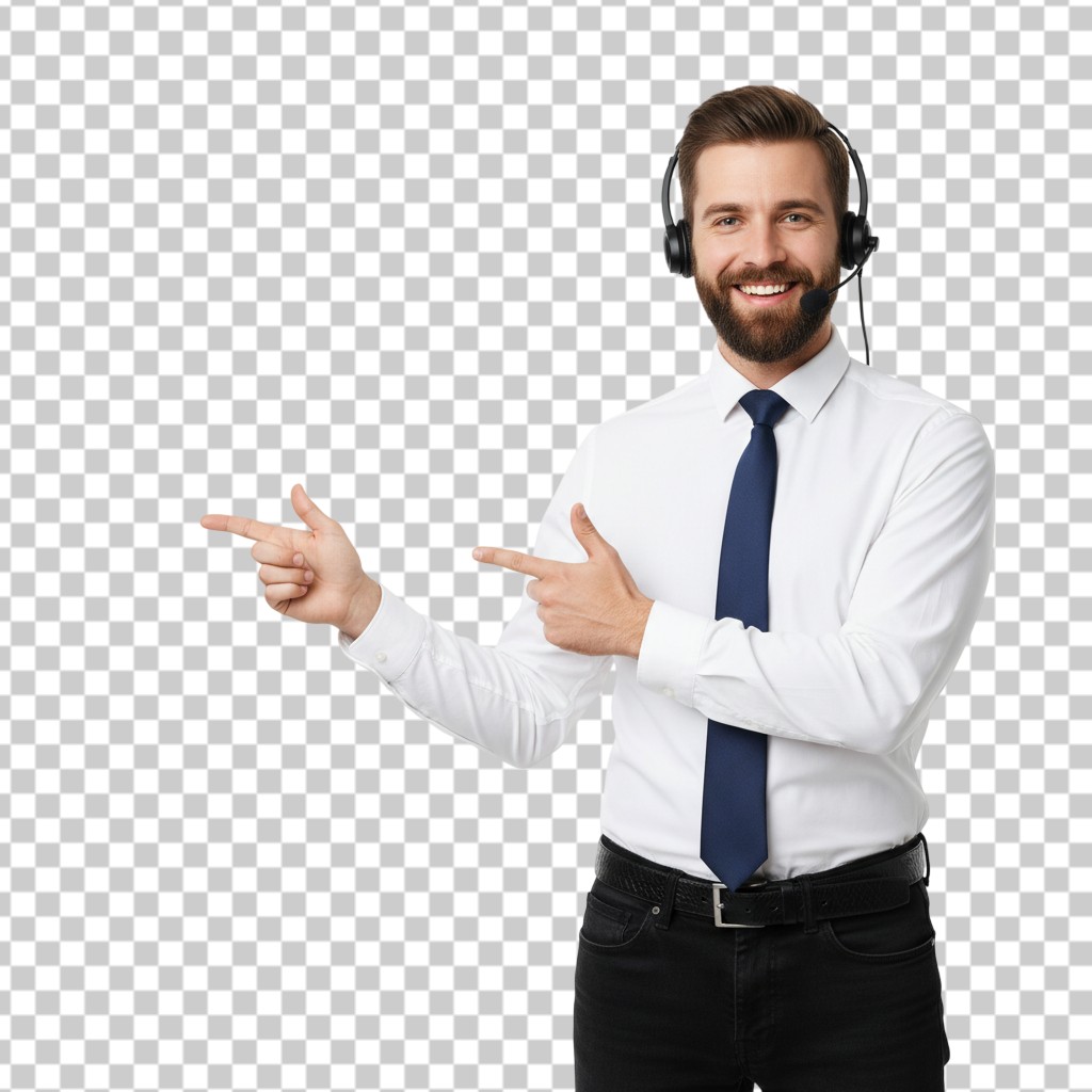 Male customer service agent in tie pointing to the side PNG Transparent Background,Professionals,Business People