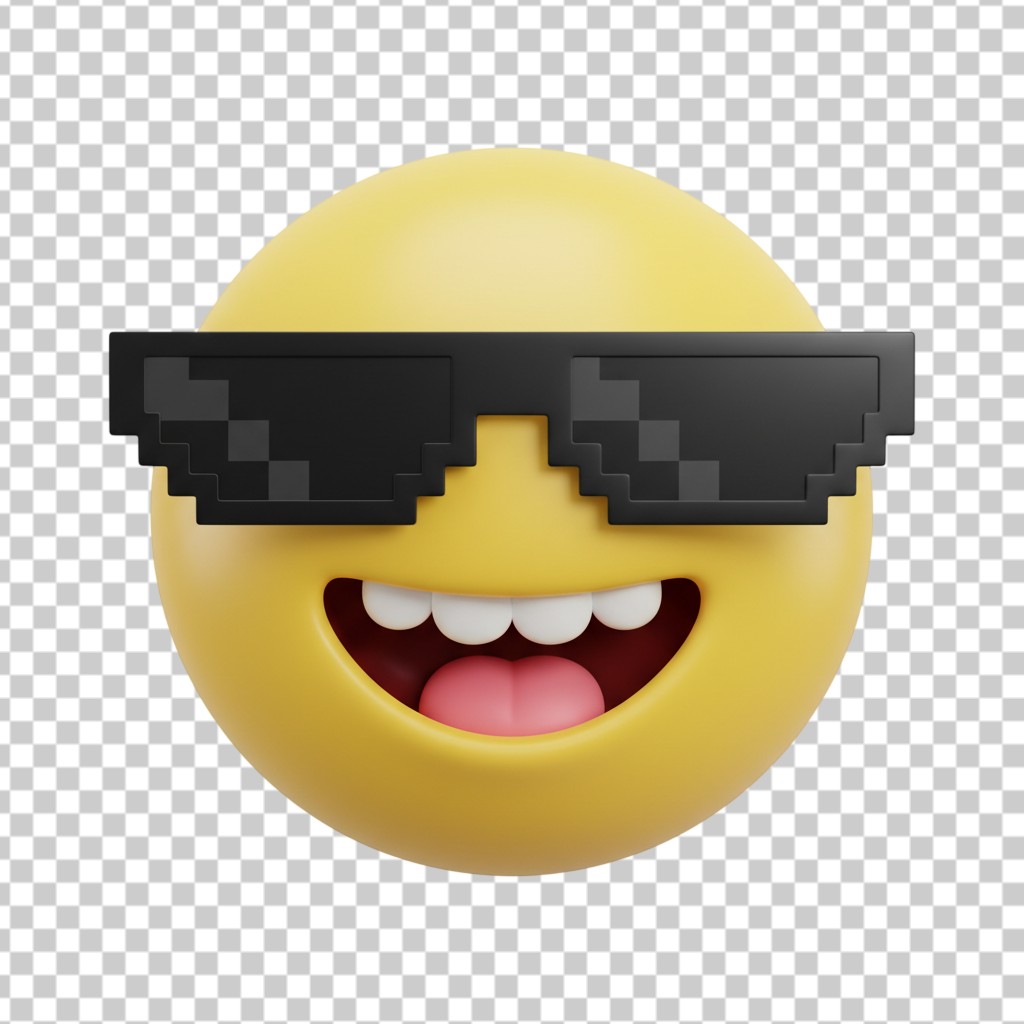 3D Smiling Emoji Wearing Pixel Art Thug Life Sunglasses PNG Transparent Background