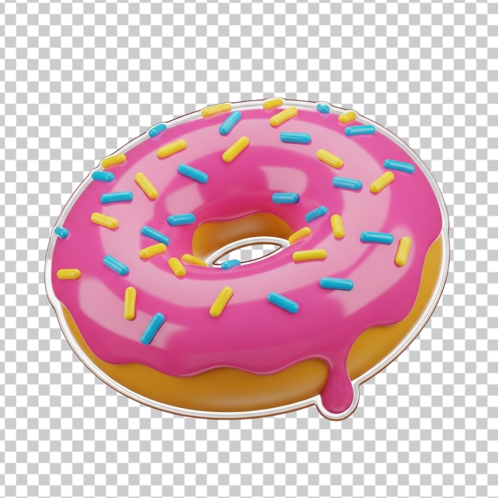3D Pink Strawberry Donut with Colorful Sprinkles PNG Transparent Background