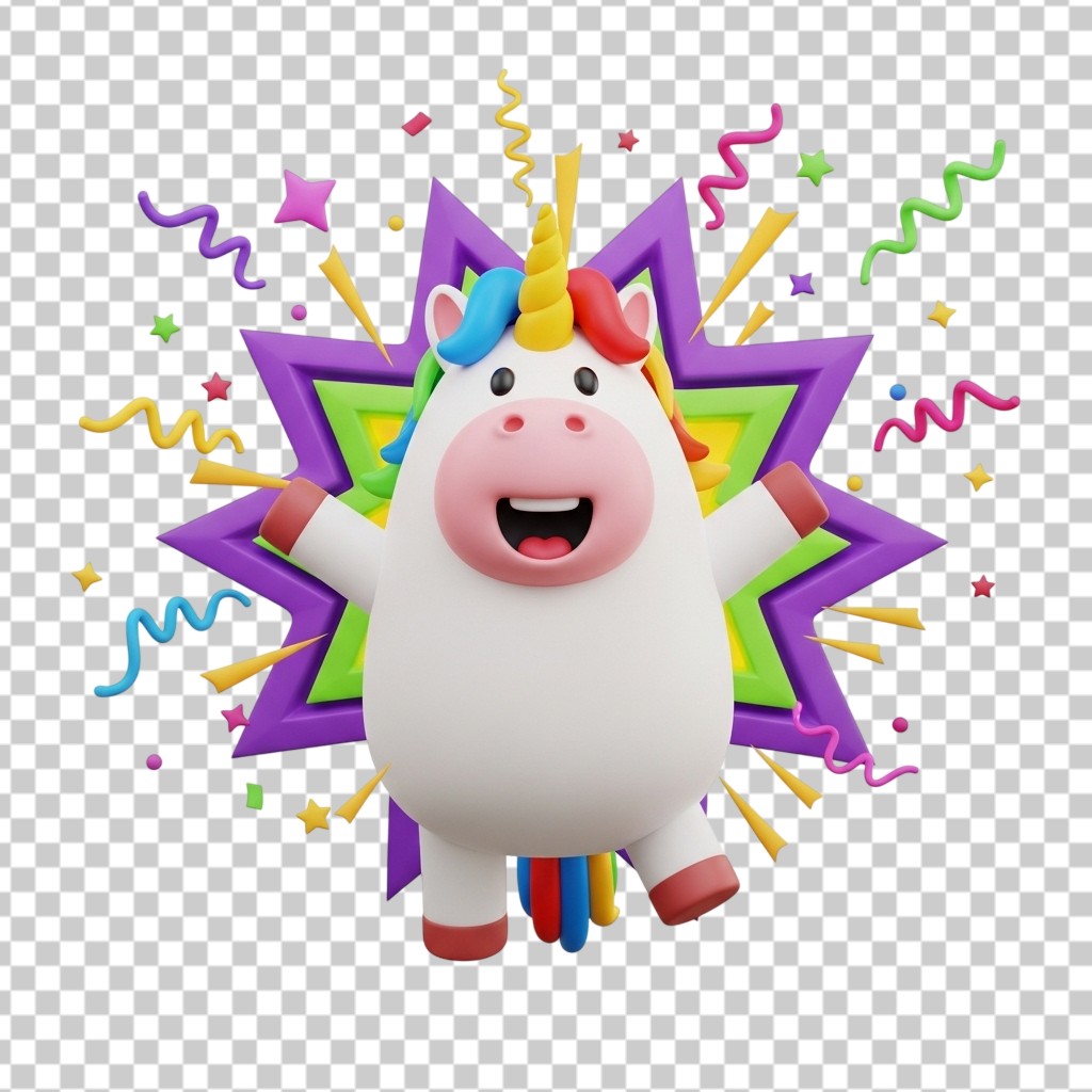 3D Magical White Unicorn Character with Rainbow Hair PNG Transparent Background
