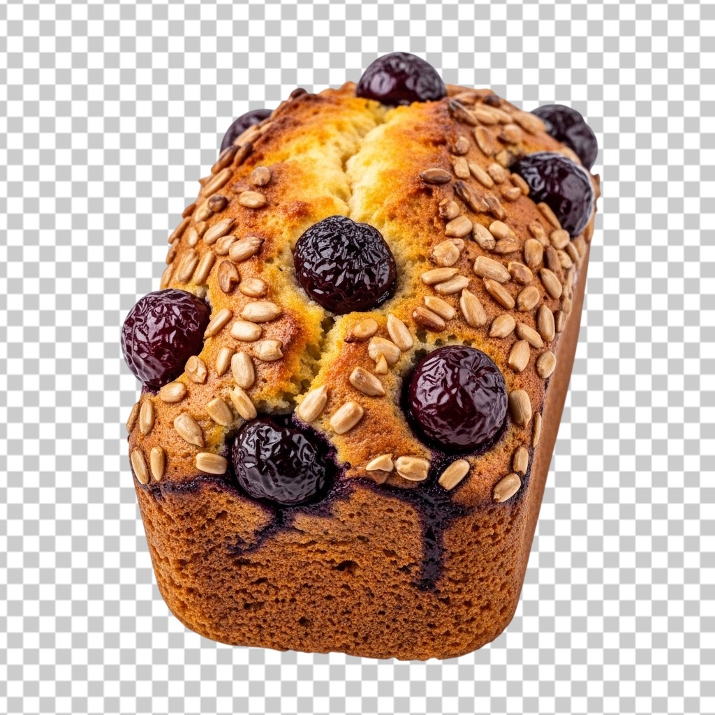 Freshly Baked Blueberry Loaf Bread with Nut Toppings PNG Transparent Background