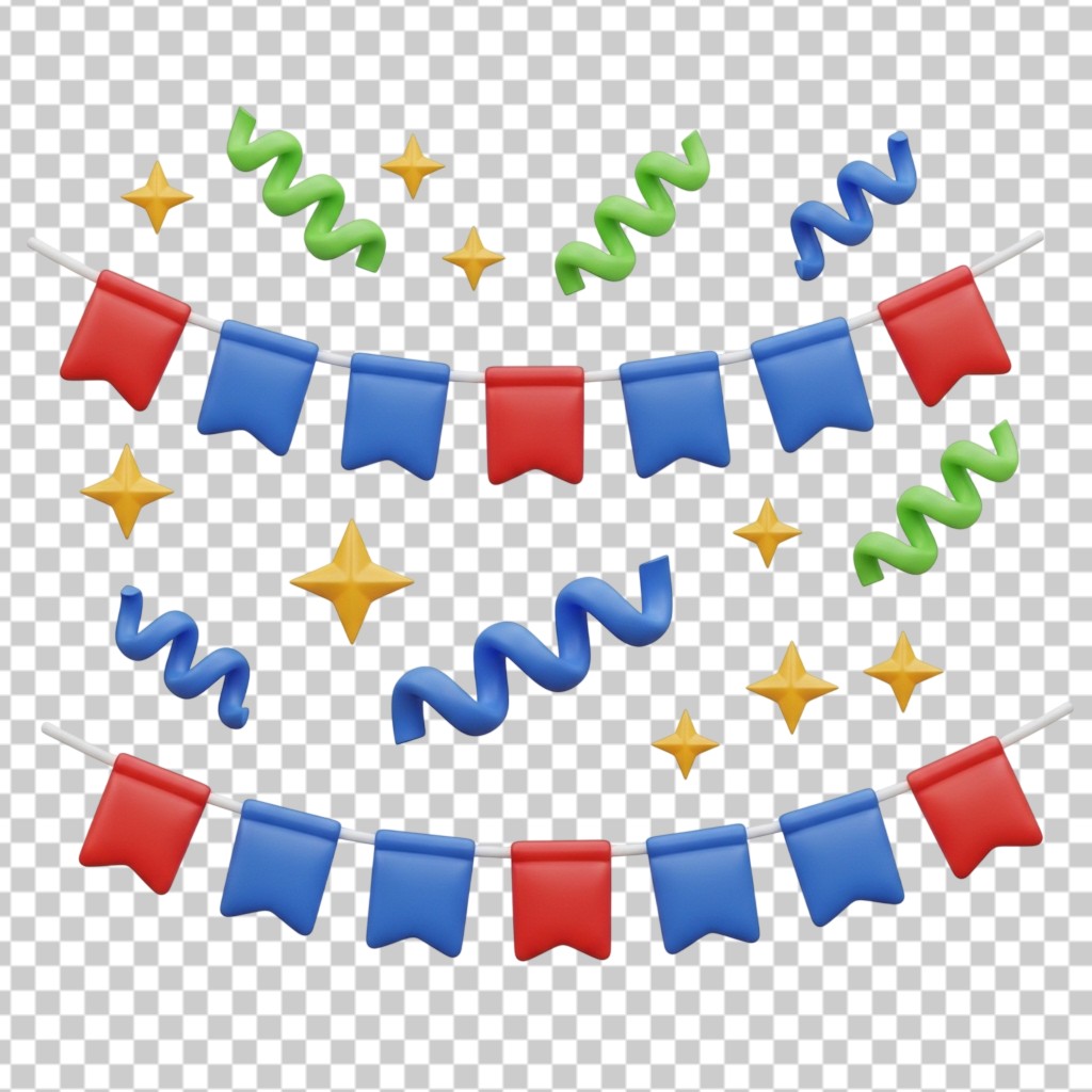 3D Festive Party Bunting Flags and Confetti PNG Transparent Background