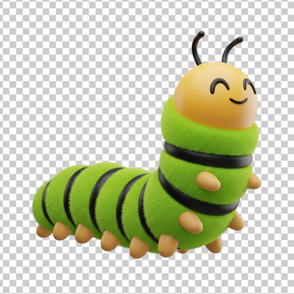 3D Cute Green Caterpillar Insect Mascot Character PNG Transparent Background