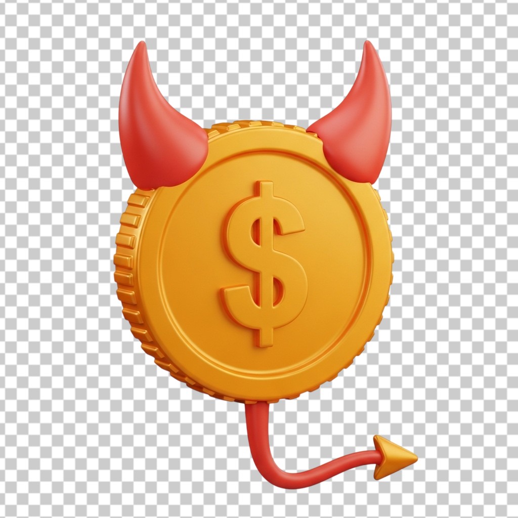 Devil Theme Gold Coin with Horns and Tail PNG Transparent Background