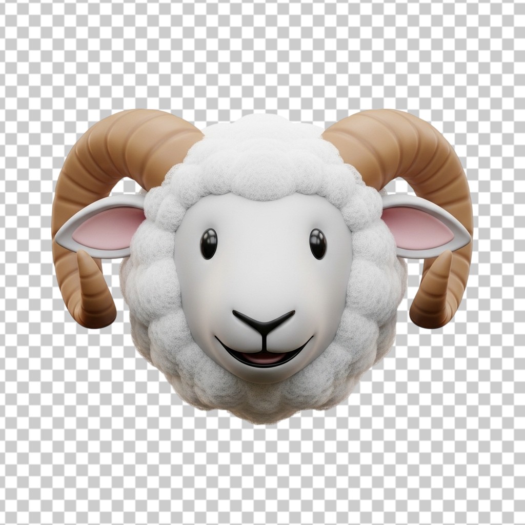 Cute White Sheep or Ram Head Character Avatar PNG Transparent Background