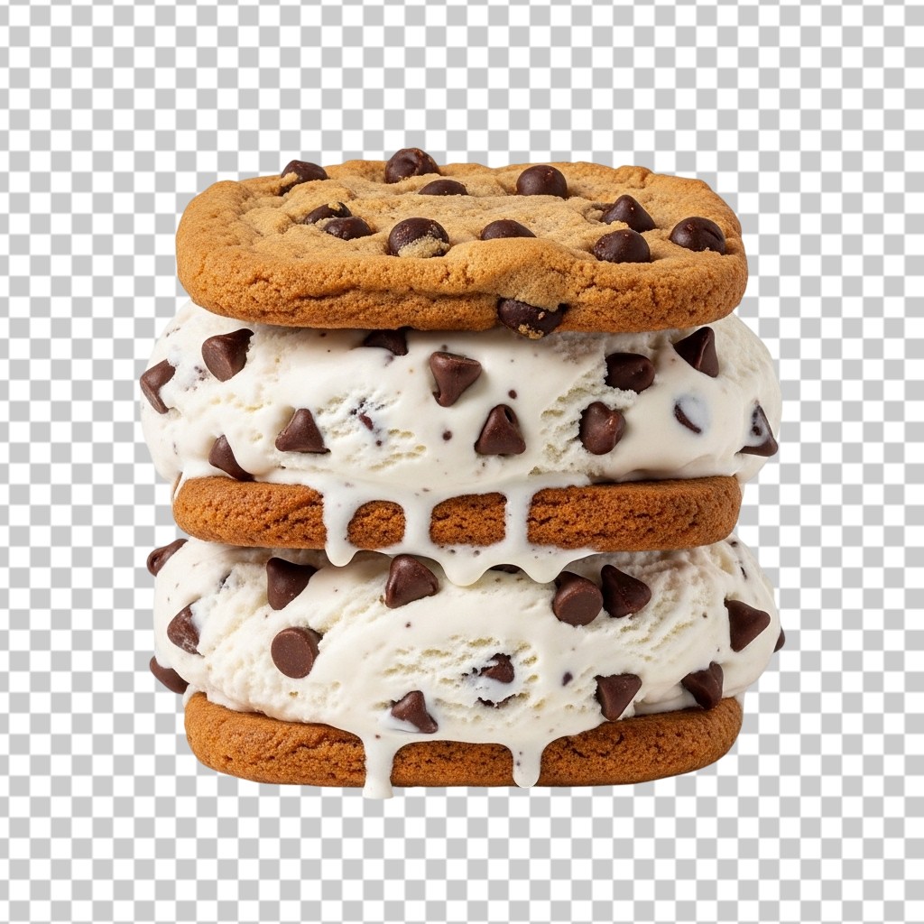 Large Chocolate Chip Cookie Ice Cream Sandwich PNG Transparent Background