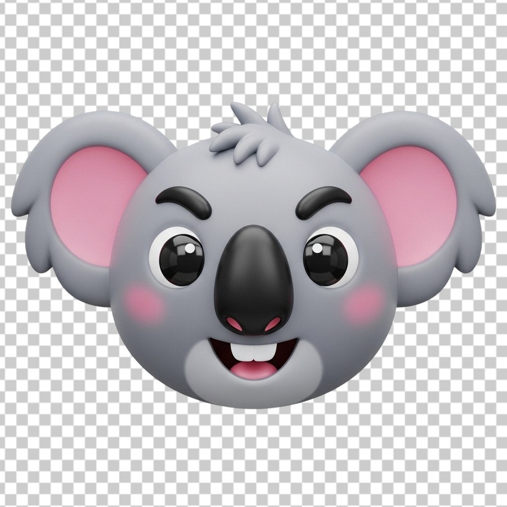3D Cute Koala Face Avatar for Animal Lovers PNG Transparent Background