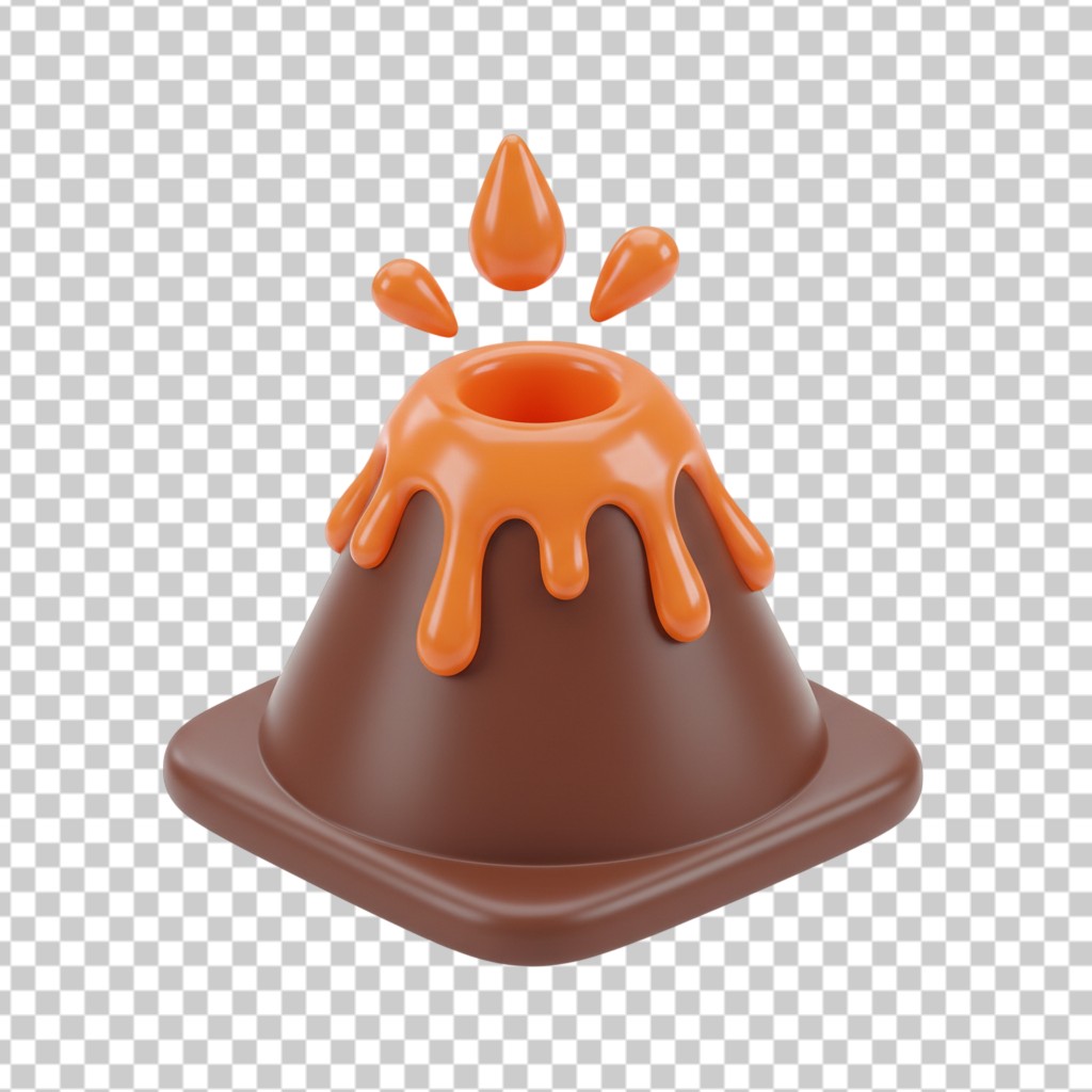 Erupting Volcano with Melting Lava 3D Nature Illustration PNG Transparent Background
