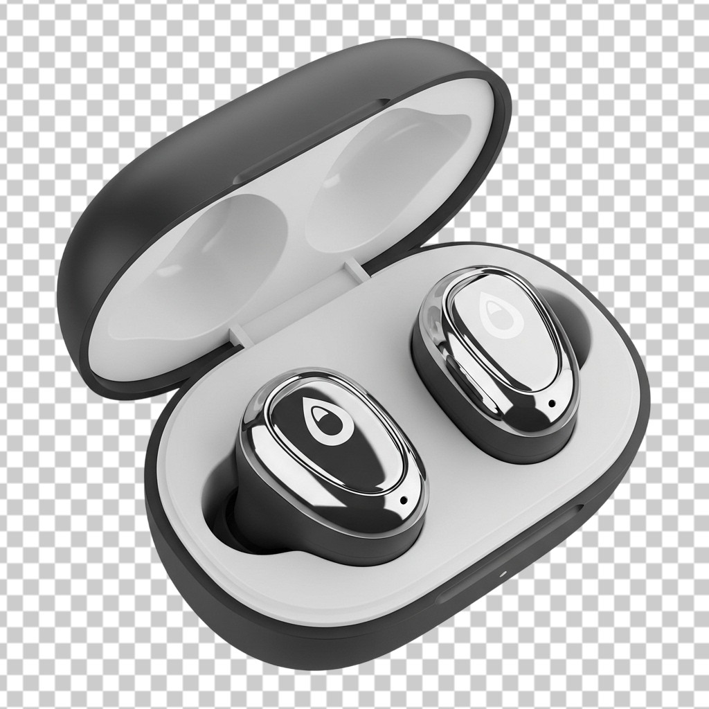 3D Wireless Earbuds in Charging Case Tech Illustration PNG Transparent Background