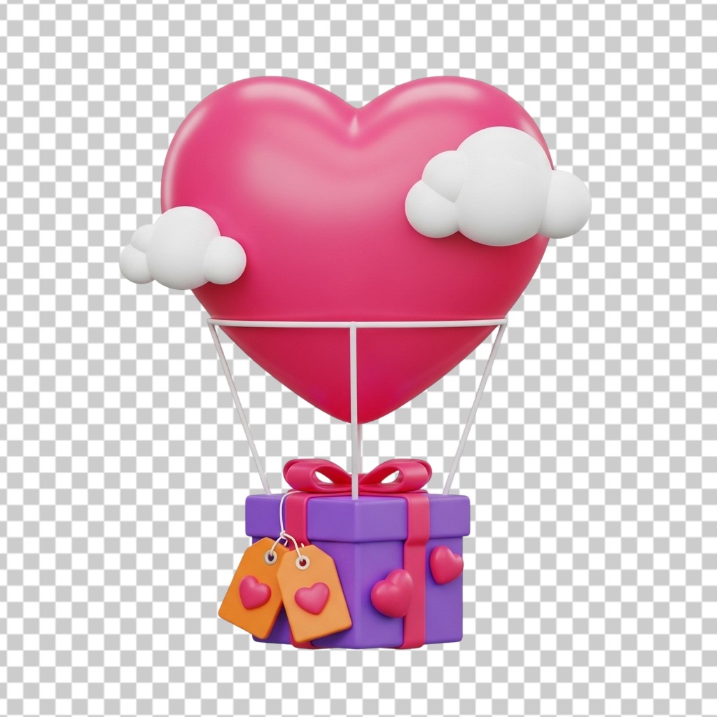 3D Heart Shaped Hot Air Balloon Carrying Gift Box PNG Transparent Background