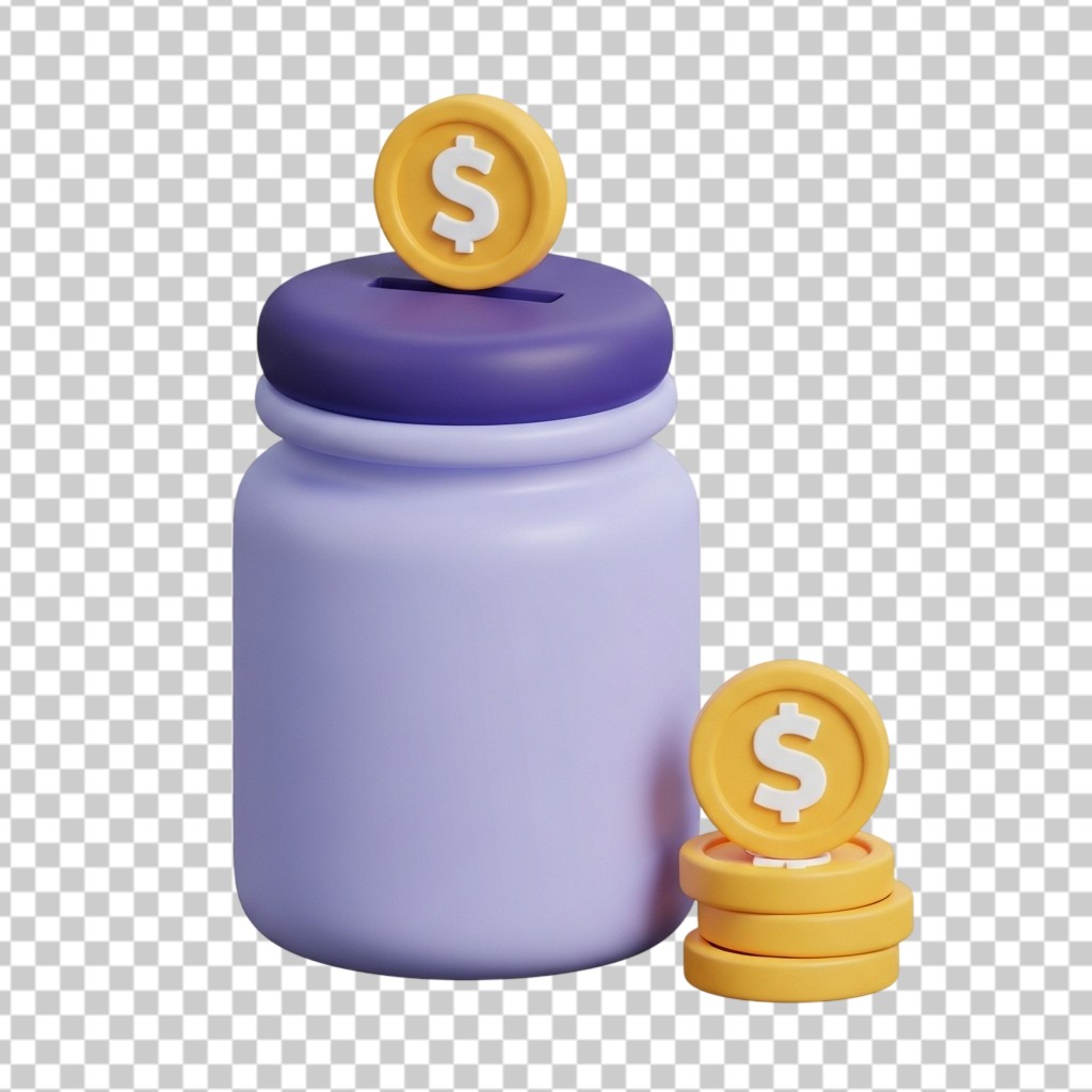 Savings Jar with Stacked Gold Coins 3D Illustration PNG Transparent Background