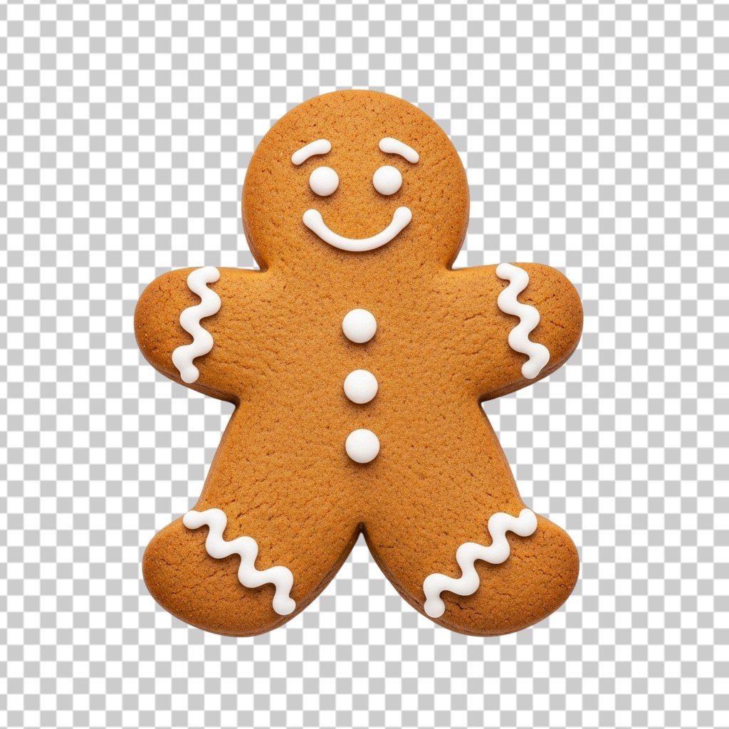 Christmas Gingerbread Man Cookie with White Icing PNG Transparent Background
