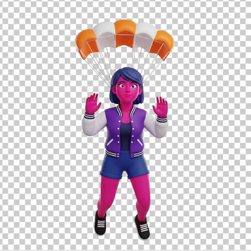 Character Skydiver Floating with Parachute 3D Character Illustration PNG Transparent Background