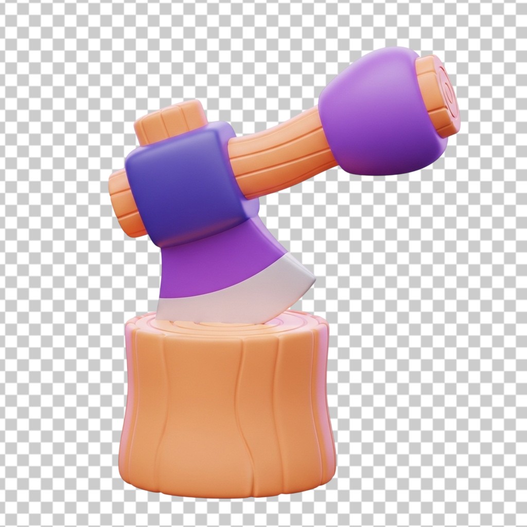 3D Woodworking Axe Embedded in a Tree Stump PNG Transparent Background