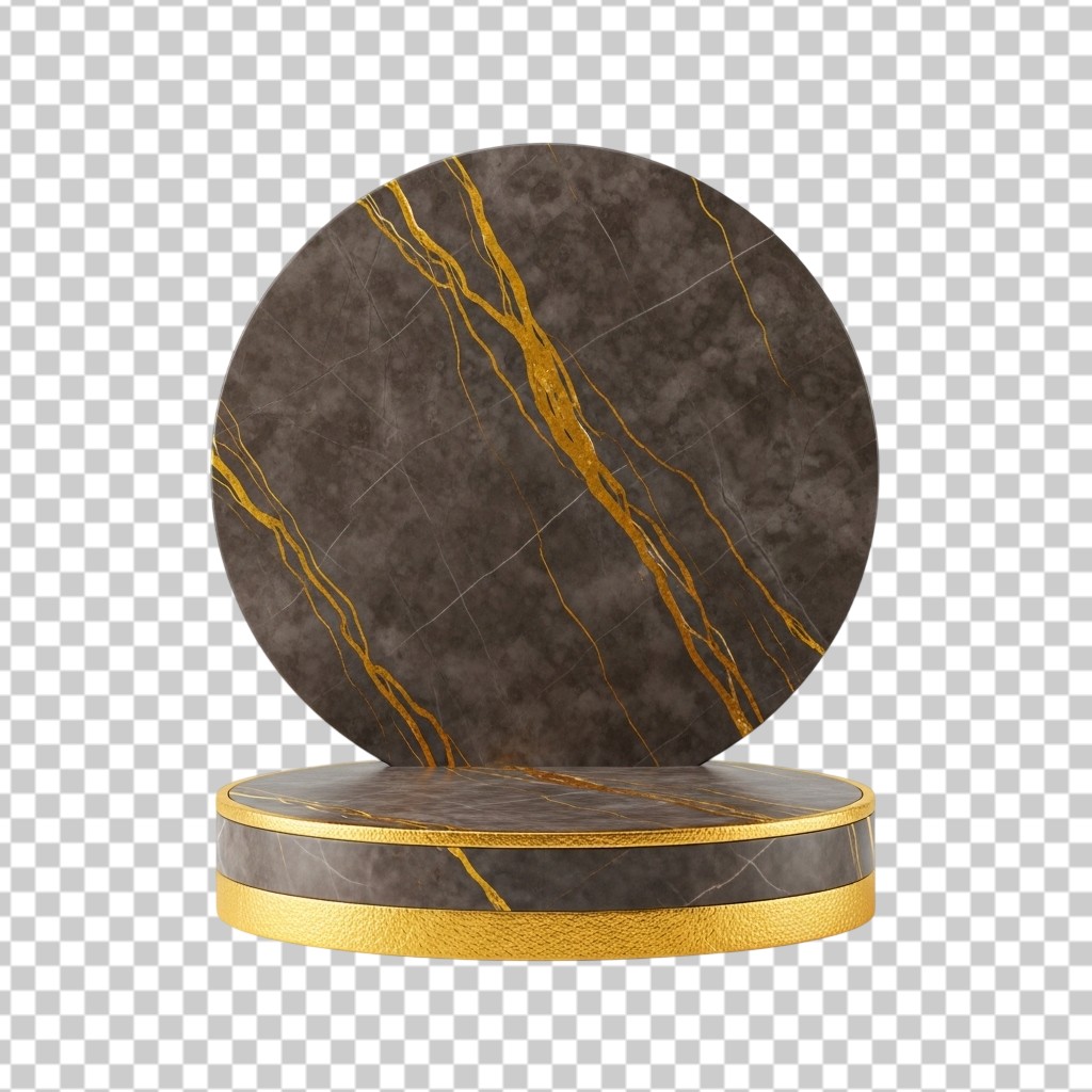 Luxury 3D Marble and Gold Cylinder Podium Stand Design PNG Transparent Background