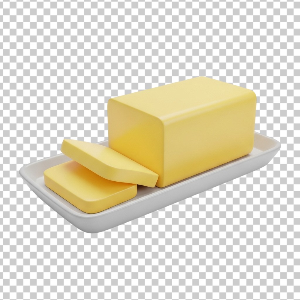 3D Fresh Butter Slices on a White Serving Plate PNG Transparent Background