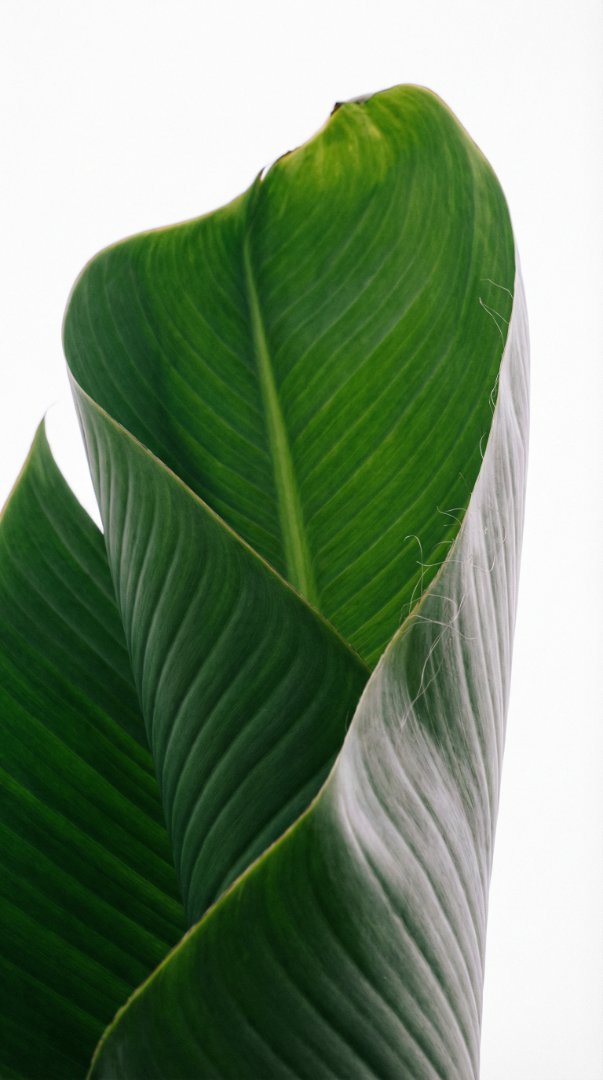 Close Up Texture of Green Banana Leaf on White Background
