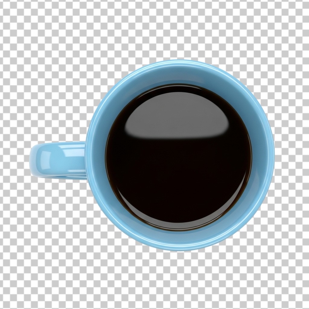 Top View of Blue Ceramic Cup with Black Coffee PNG Transparent Background