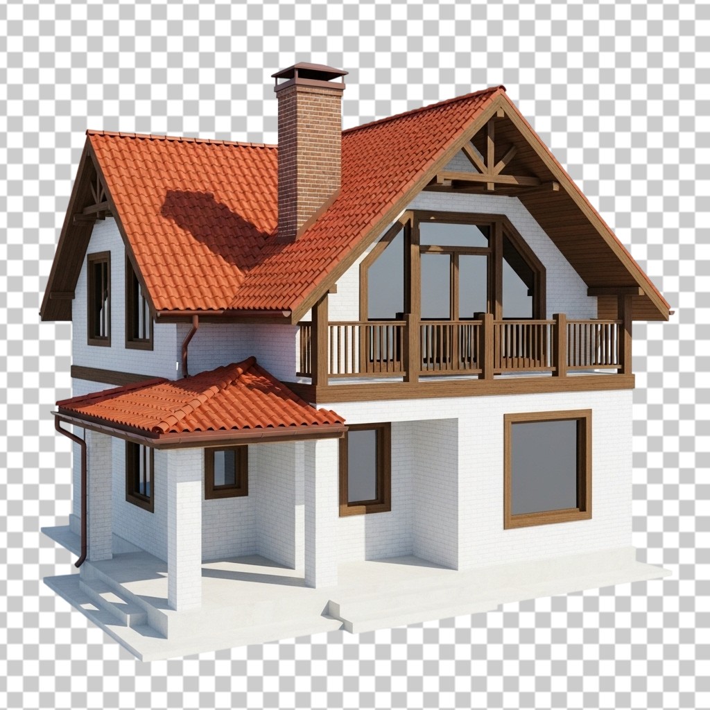 3D Realistic Modern Suburban House Building Model PNG Transparent Background