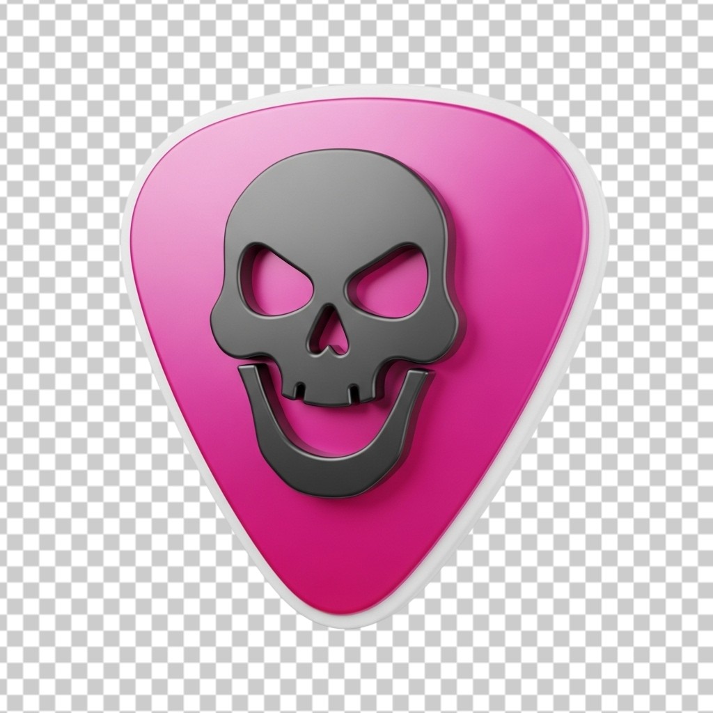 3D Pink Guitar Pick with Black Skull Design PNG Transparent Background