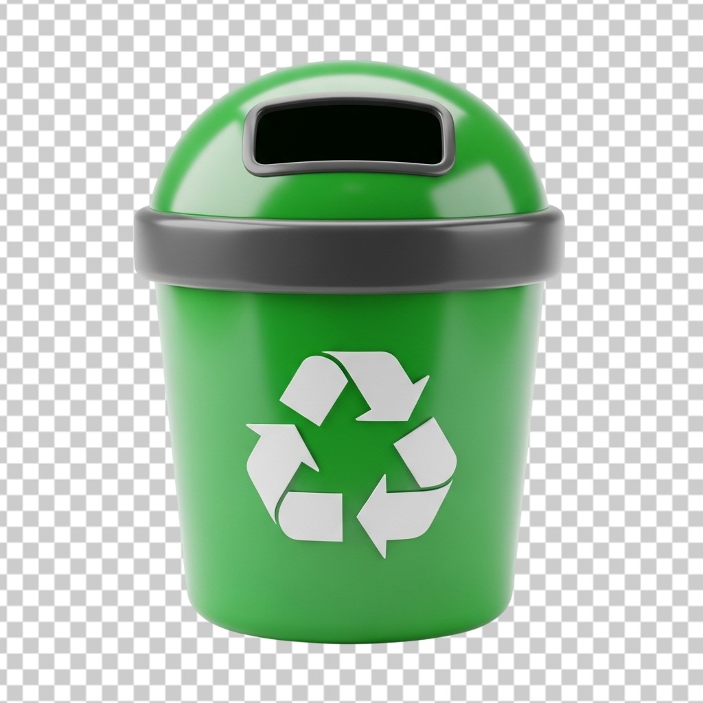 Green Recycling Bin Trash Can 3D Illustration PNG Transparent Background