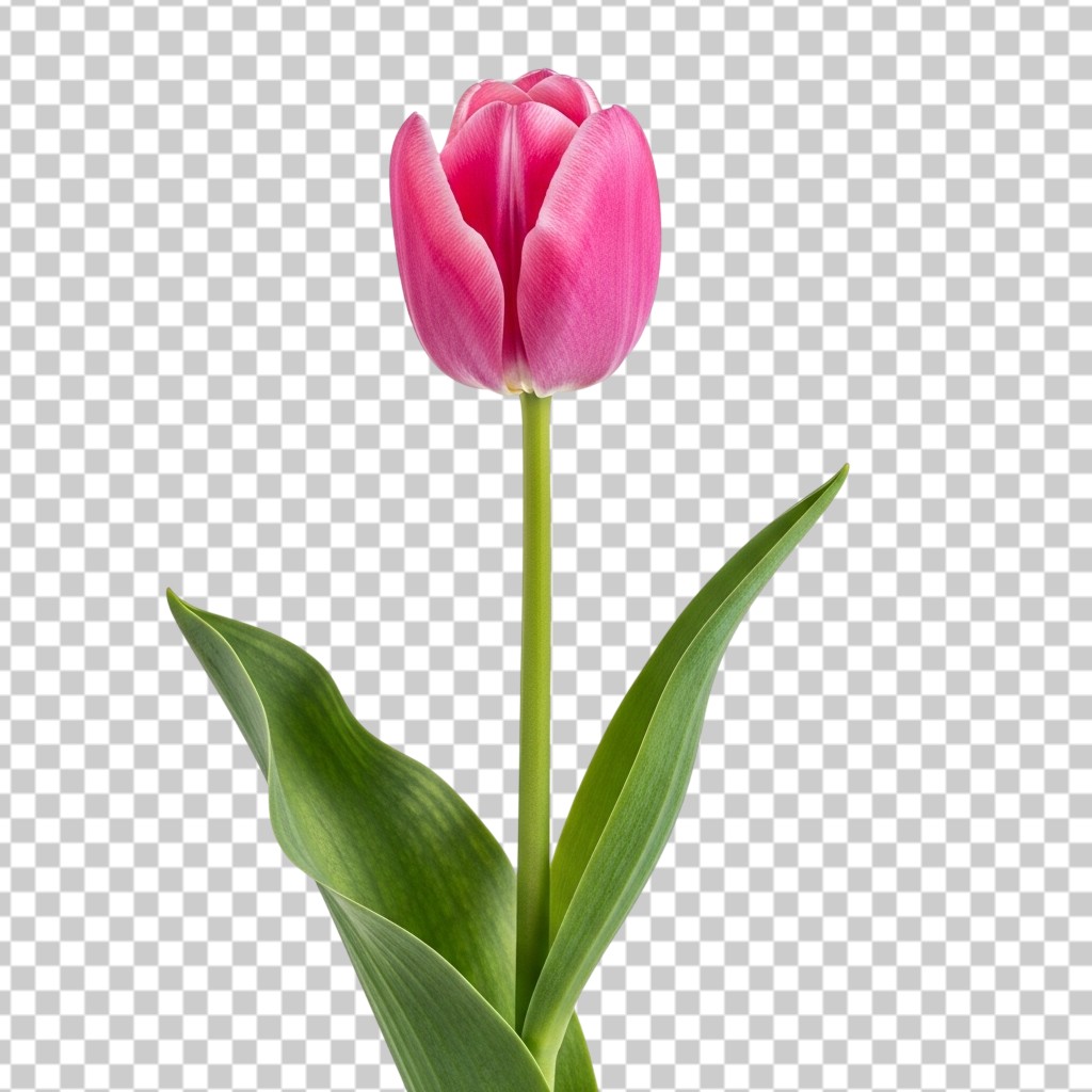Elegant Single Pink Tulip Flower with Green Stem Nature PNG Transparent Background